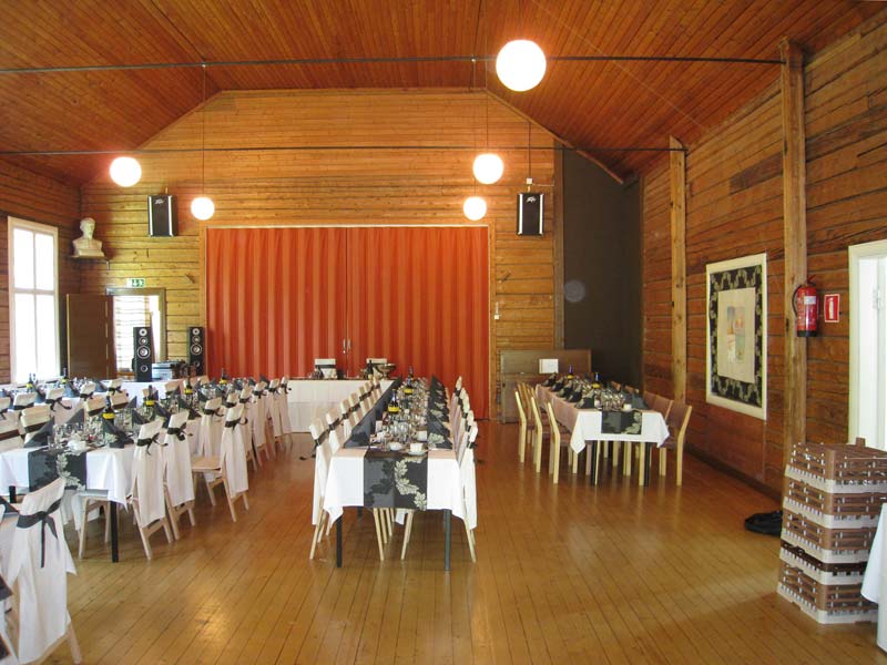 Monipuolinen äänentoistolaitteisto, cd-soitin ja piano. Kaksi mikrofonia, valkokangas ja videotykki. Piha-alueelle mahtuu noin 40 autoa.