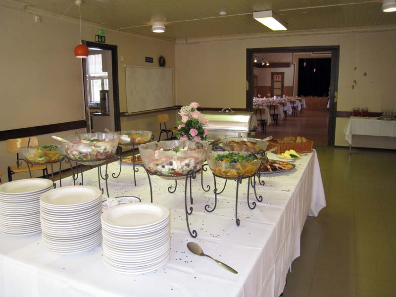 Juhlasali on rekisteröity n. 180 hengelle ja pöytiin kattaus onnistuu hienosti 140 hengelle. Mikäli halutaan myös tanssilattia käyttöön, 120 henkilöä istuu vielä mukavasti pöytien ääressä.