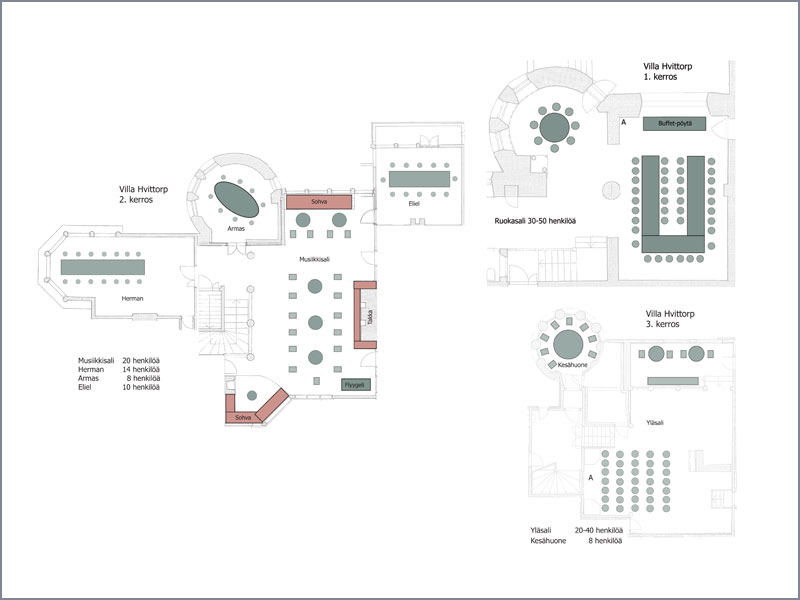 Villa on ainutlaatuinen yli 100-vuotias rakennus Vitträsk-järven äärellä. Tilat sopivat enintään 50 henkilön tilaisuuksiin. Villassa on kolme kerrosta. Alakerrassa on kattomaalauksin koristeltu ruokasali, keskikerroksessa juhlava musiikkisali ja sekä pienempiä huoneita vaikkapa ryhmien käyttöön. Viehättävä ja intiimi yläkerran ullakkokappeli tarjoaa kastejuhlaan tai pieneen hääjuhlaan romanttiset puitteet.